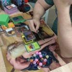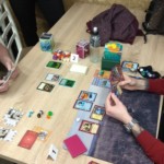 Ahogy látható minden szín képviseltette magát és ahogy a narancslapoknál a csatamező, úgy itt Elenios (12) emelkedett ki a mezőnyből, hiszen a játékosok fele beépítette a szerelem istenének lapjait a paklijába. Ez persze nagyban köszönhető a nemrég megjelent Művészek céhének is, amit egy ember kivételével mindegyik kéket használó játékos bevetett a nap folyamán (tehát 11-en játszottak vele). A leggyakoribb kombináció amúgy a piros-kék volt, nagyrészt csatamezővel.